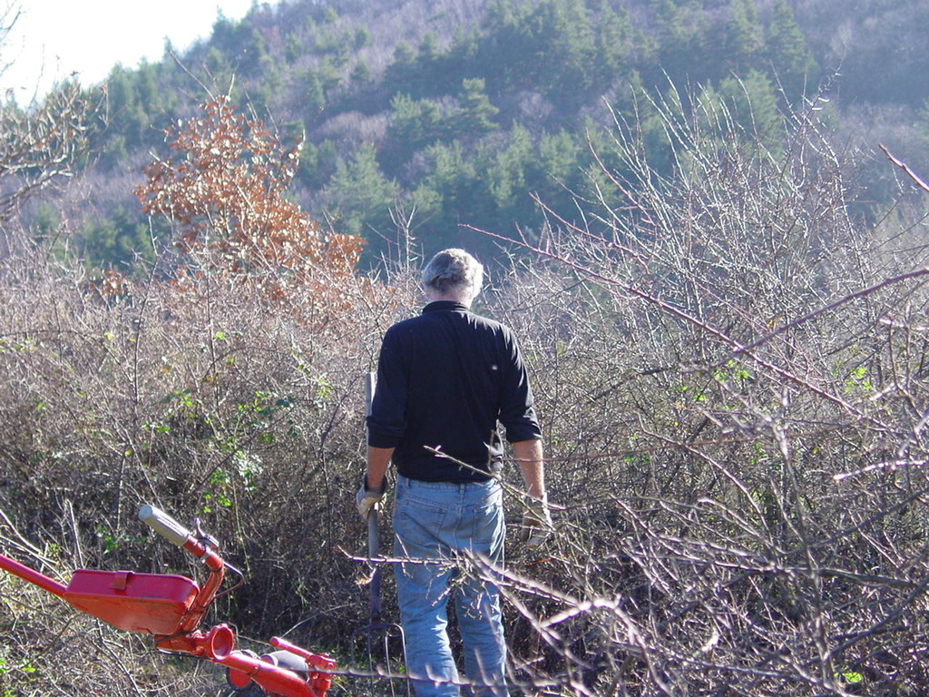 Das Terrain war durch das Brachliegen der letzten ca. 8 Jahre ( 95-03 ) arg zugewuchert, und verlangte nach Entrodung, welches dann auch mühsam in Angriff genommen wurde. Auf die Mithilfe etlicher Kollegen musste er dabei nicht verzichten. Diese Arbeiten nahmen doch fasst ein Jahr in Anspruch, natürlich mit kleinen Unterbrüchen.