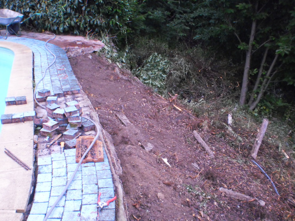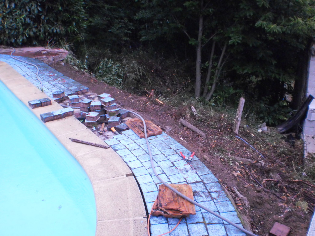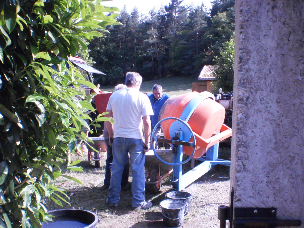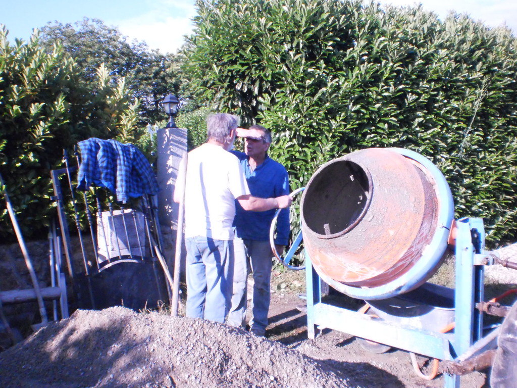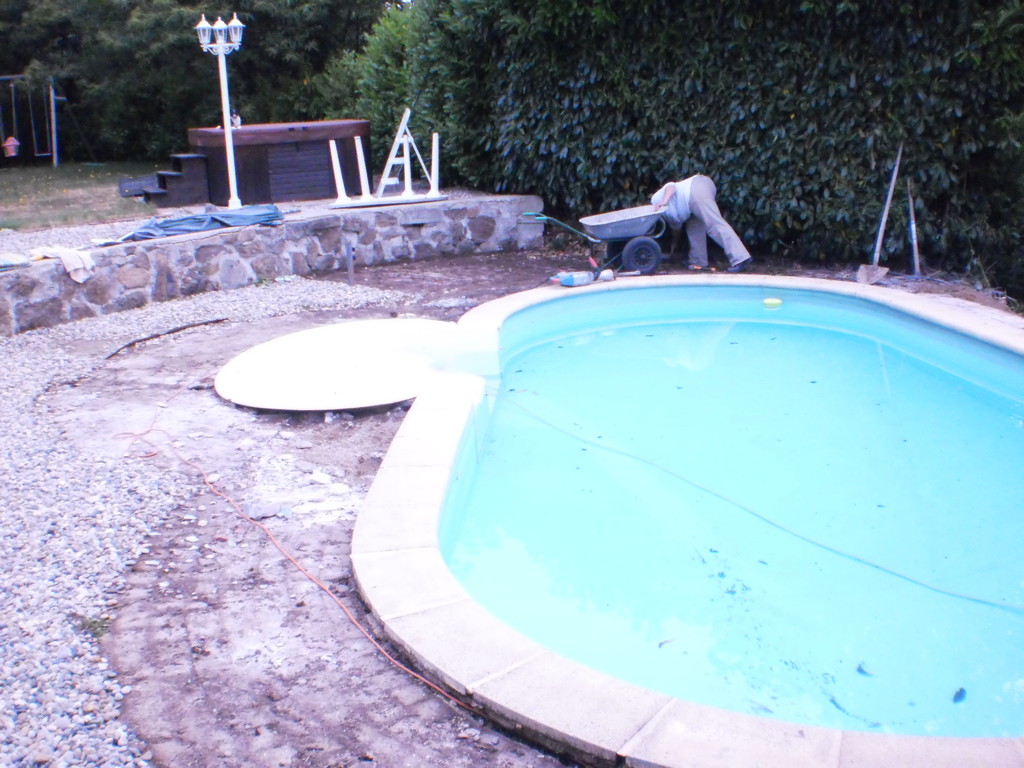 Nachdem die Umrandung nun zum 3. Mal gemacht werden müsste, und der Steinkiesboden für Mameli nicht so angenehm ist sowie die Filterpumpe durch eine Sandfilteranlage ersetzt werden muss, haben wir uns entschlossen nun den ganzen Boden zu betonieren. Am 31.5.2011 habe ich damit begonnen die Pflastersteine rund um das Schwimmbad zu entfernen sowie den Kies auf den oberen Boden zu verteilen. Danach mussten auf der unteren Seite des Bades Fundamente gegraben werden, damit das Ganze auch richtig stabil wird. Die Sandfilteranlage wurde am dem 3.6.2011 in Angriff genommen. Am 8.6.2011 nahm Claude die bisherige Arbeit ab und gab die Betonierung frei. Ab 18.00 Uhr trafen alle Helfer pünktlich ein und es begann rucki zucki. 2 Stunden später war das Werk vollbracht. Ich durfte dann noch die Dilletations-Fugen machen ( was für ein Staub ), den Geräteraum einrichten und sonst noch so die Restarbeiten mit Mameli beenden. Am 25.06.2011 fand das Ganze einen krönenden Abschluss mit einem Grillabend welcher feucht fröhlich seinen Abschluss fand.