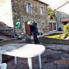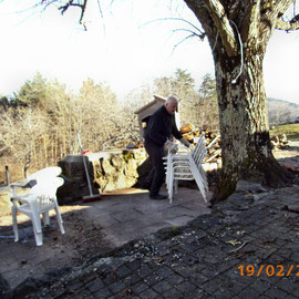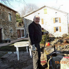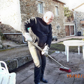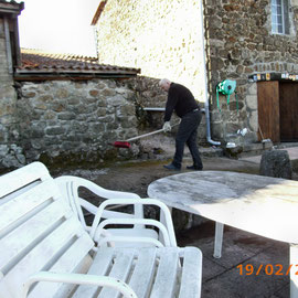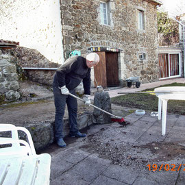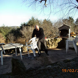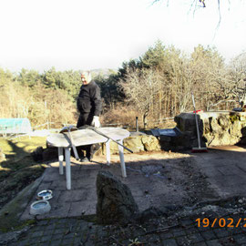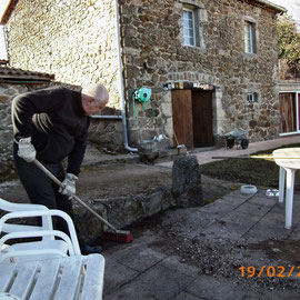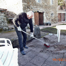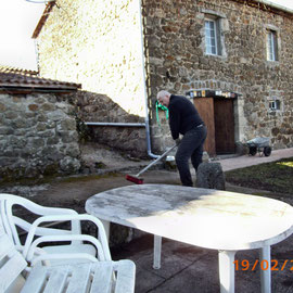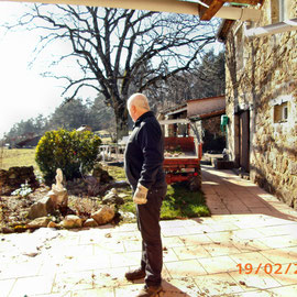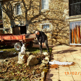 Etwas früh der 19. Februar, jedoch das Wetter war so super, das er es einfach nicht lassen konnte den Vorplatz nach dem " Sauwetter " herzurichten, so dass man Diesen auch wieder begehen konnte.