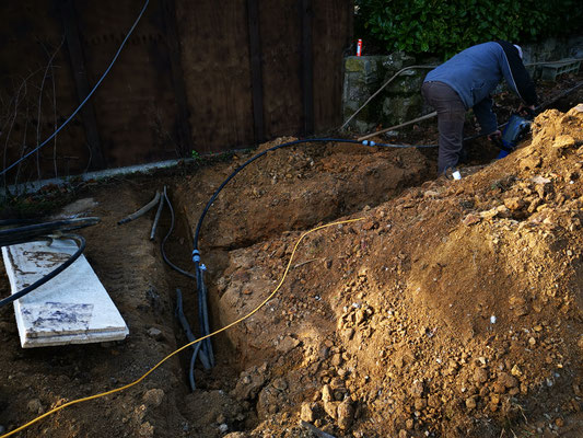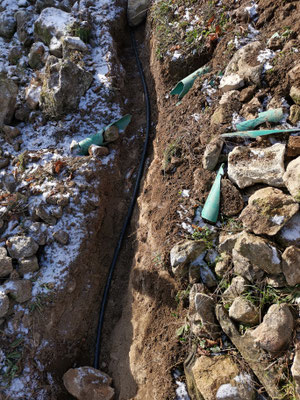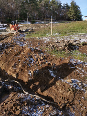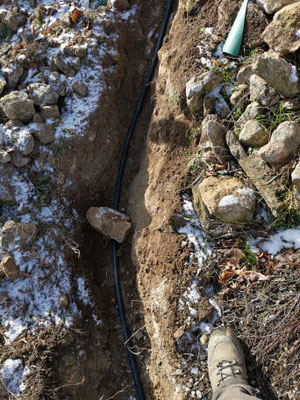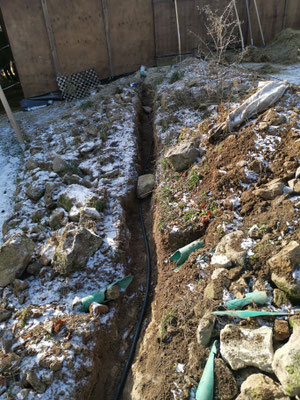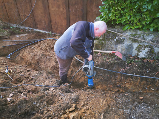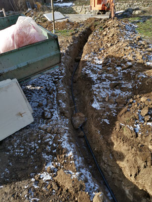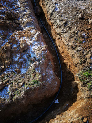 Am 18. Januar haben er und Olaf angefangen oben beim Eingang die Wasserleitung aufzugraben und tiefer zu legen. Olaf half am ersten Tag mit und der Rest machte er halt dann selber fertig, wobei er wieder mal merkte, dass es zu zweit halt interessanter ist. Doch es musste gemacht werden und hat auch geklappt. Wieder was erledigt was schon lange hätte gemacht werden müssen.