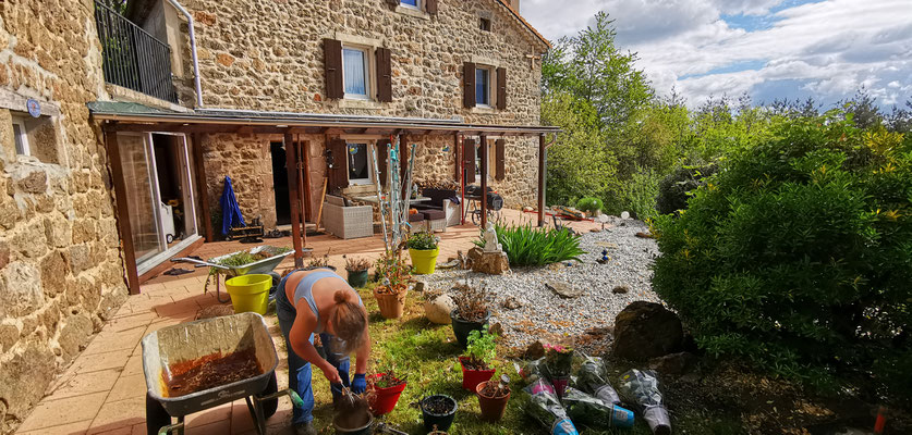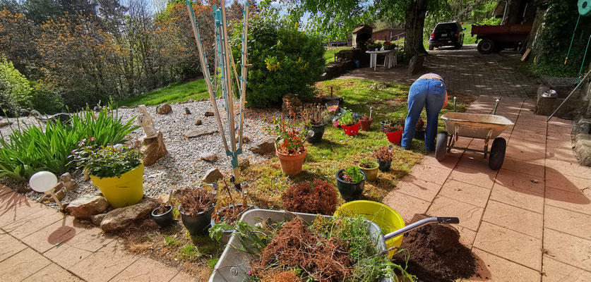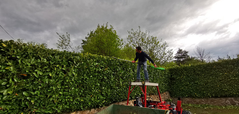 Im Mai, dieses Jahr sehr spät, konnten die Gartenarbeiten in Angriff genommen werden. Gartenbeete auffüllen und anpflanzen, Vorgarten bepflanzen und Unkraut entfernen, Hecke schneiden ect. ect. Bei der hecke hatte er hilfe von David, danke viel mal.
