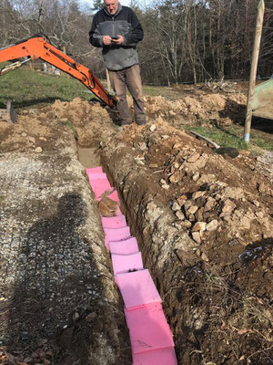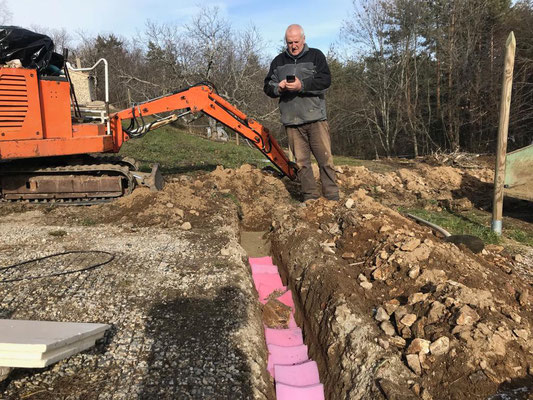 Am 29. Januar legte er die Wasserleitung gleich unterhalb des Chemines und am 30.und 31. Januar unten beim Stall mit Olaf tiefer, damit diese nicht mehr gefrieren kann, bei normalen minus Temperaturen. Olaf brachte noch einen ganzen Sack mit Isolationsplättchen mit, welche sie dann zusätzlich auf das Wasserrohr legten. Bei der Pferdetränke wurde dies ebenfalls gemacht, einzig im Stall drinnen, war die Leitung isoliert und doch schon gut eingedeckt. Die Spitzarbeiten und das rauskratzten war doch echt mühsam, aber zu zweit hat es ihnen trotz allem, Spass gemacht. Danke an dieser Stelle Dir Olaf ganz herzlich.