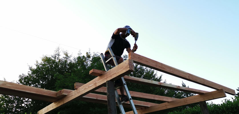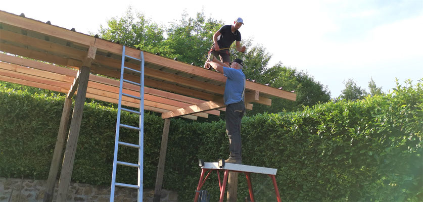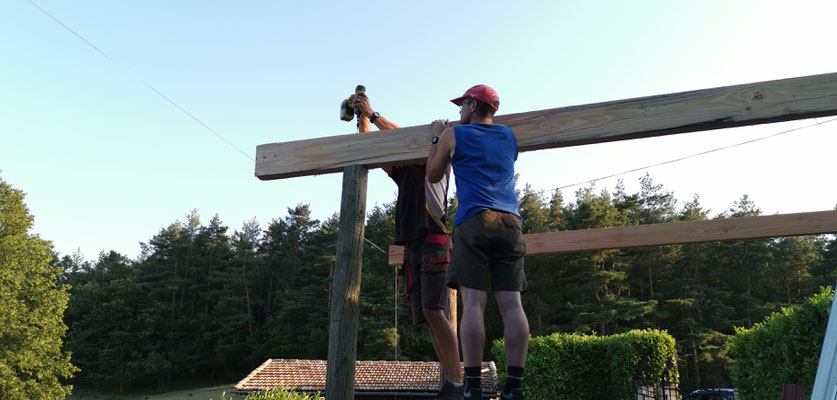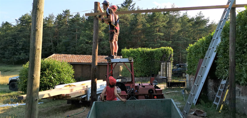 Vom 6 - 17.7 2019 erstellte er und Agnes mit David und Bertrand die Garage für den Beni, welche Chnuschtis gekauft haben. Jeweils nur in den Abendstunden, da die Helfer tagsüber arbeiten mussten. Vielen vielen Dank.