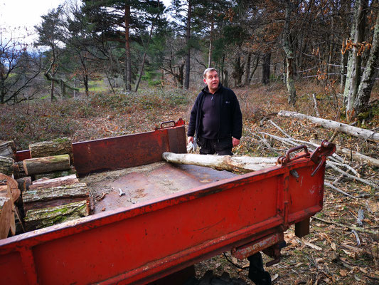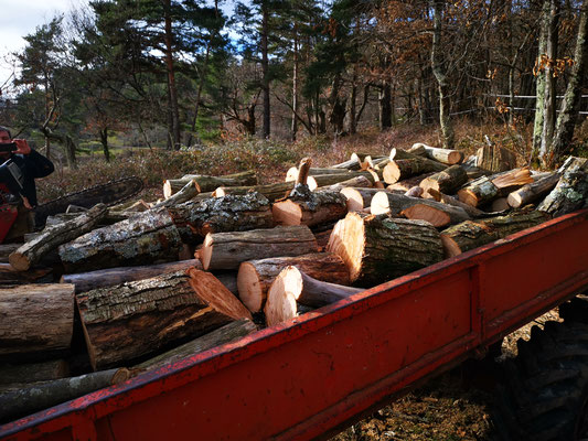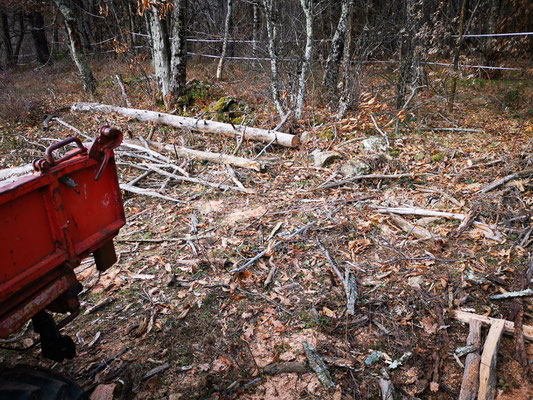 Am 8.- und mit 10 Januar haben Olaf und er Holz für das Haus von Olaf gefällt, entastet, geschnitten, transportiert, gespaltet und im Anhänger zu seinem Haus gebracht, satte 3 Anhänger voll. Im gleichem Zug fällten sie auch einen Baum miteinander welcher auf dem Nachbargrundstück auf der Stromleitung lag und die Gefahr bestand, dass die Leitung reisst.
