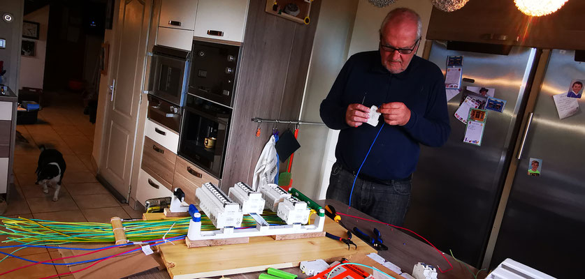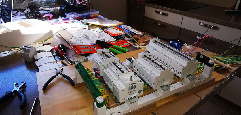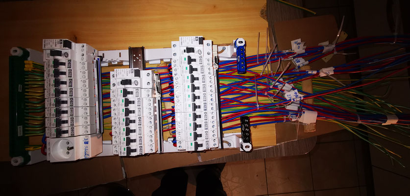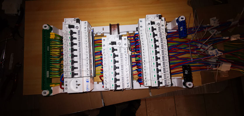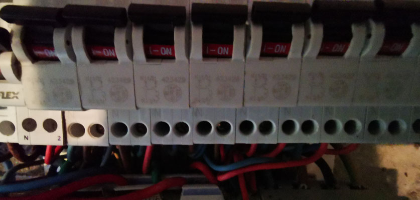 Am 20. November hatte er endlich den Mut das Elektrotableau neu zu machen mit Hilfe seiner Frau. Dies war nun wirklich nicht so einfach, war die aufgabe die einzelnen Eingangsleitungen ( 3 an der Zahl ) auf einzelne Gruppen zu legen und diese nicht zu Überlasten. So entstand eine Gruppe, wo nur das angeschlossen wird, welches bei einem Stromausfall gebraucht wird, und dann mittels Notstrom-Gerät betrieben werden kann. des weiteren gabs eine Gruppe Haus, Gruppe Werkstatt mit Stall und Ferienwohnung sowie eine für Bar und Schwimmbad. Nachdem im Haus alle Leitungen markiert wurden und anschliessen abgehängt wurden, konnte das vorbereitete verdrahtete Tableau montiert und zusammen gehängt werden. Bis auf zwei doppel Schalter lief alles einwandfrei.