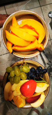 Tag 10: Heute gab es neben dem Shake am Morgen, Früchtemüesli zum Mittag und Abends einen Gemüseauflauf mit gehaktem Rindsfleisch. Dessert Apfel, Pfirsich, Zwetschgen und Trauben. Sonst ist alles in Butter, keine Probleme mit Hunger und mit süssem.