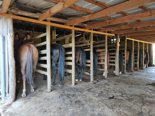 Am 17. Sebtember erhielten Chnuschtis 2 neue Pensionspferde. Tranquillo und Maxi Med, ein Halbbruder von Madmax welcher auch hier ist. Nach erfolgter Zusammenführung und erstem beschnuppern, erfolgte die erste Fütterung. Danach das leibliche Wohl der Besitzerinnen und seiner Tochter, welche den Transport durchführte. Lustig gings zu und her und alsbald schon wieder die Trennung. Vielen Dank für das Vertrauen und Dir Evelyne für die Vermittlung. Danke