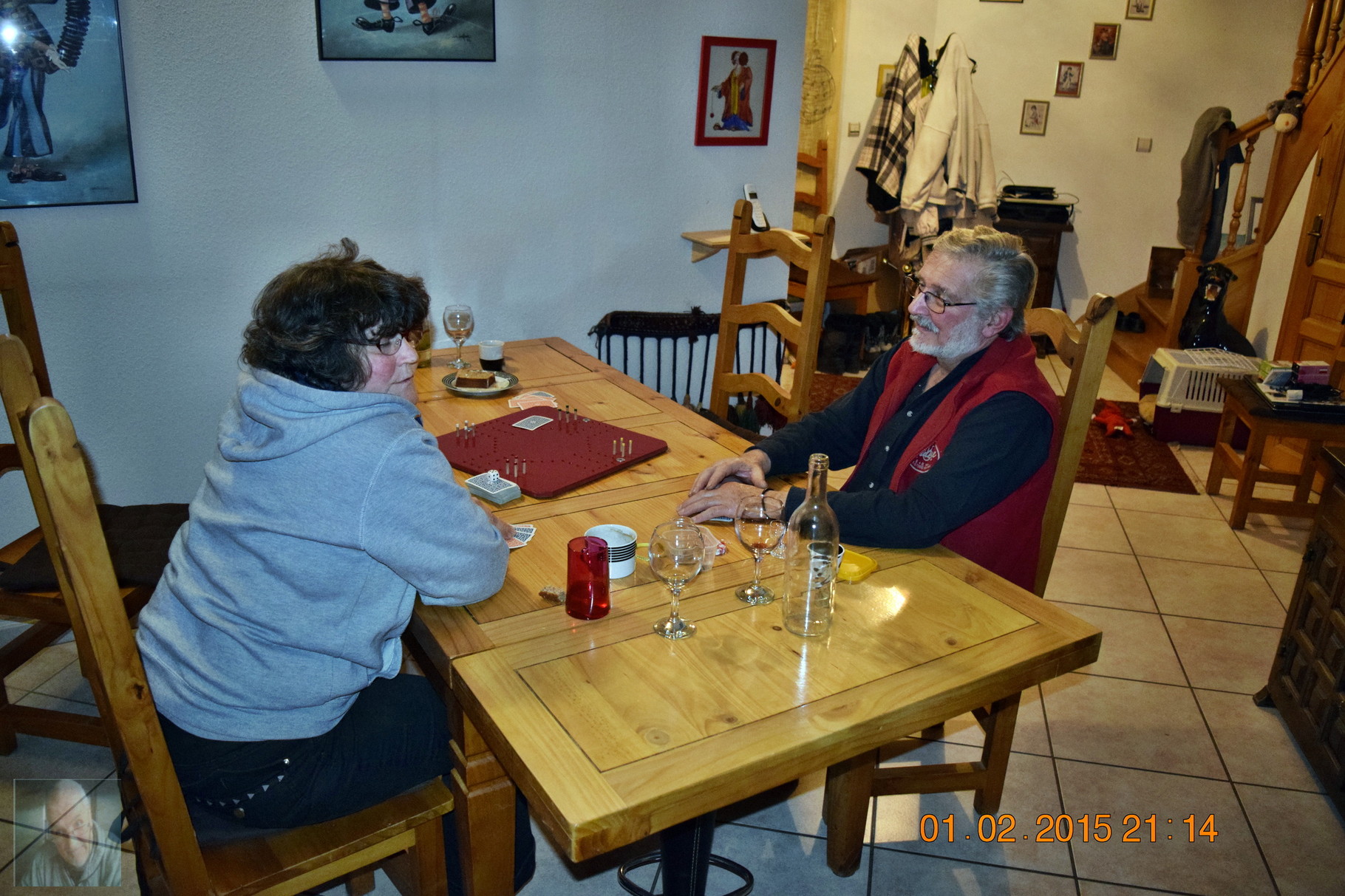 Ahhh hat das geschmeckt. Agneses Kuchen nach Rezept Frau Räbers zum Dessert mit einem guten Espresso, plus ( einen Gügs ), rundete den Schmaus genüsslich ab. Zwei gemütliche Doc - Partien, welche Rudi und Thechnuschti wie üblich verloren, vervollständigte den Abend.