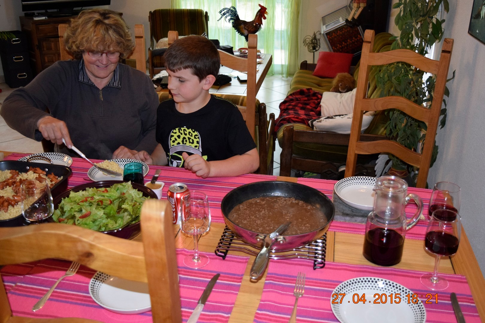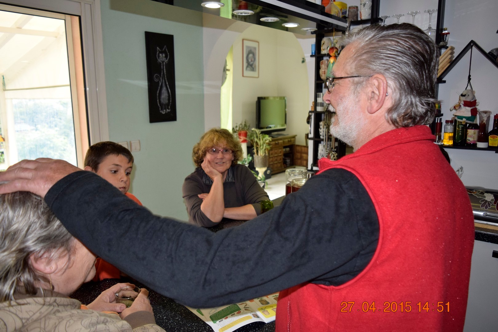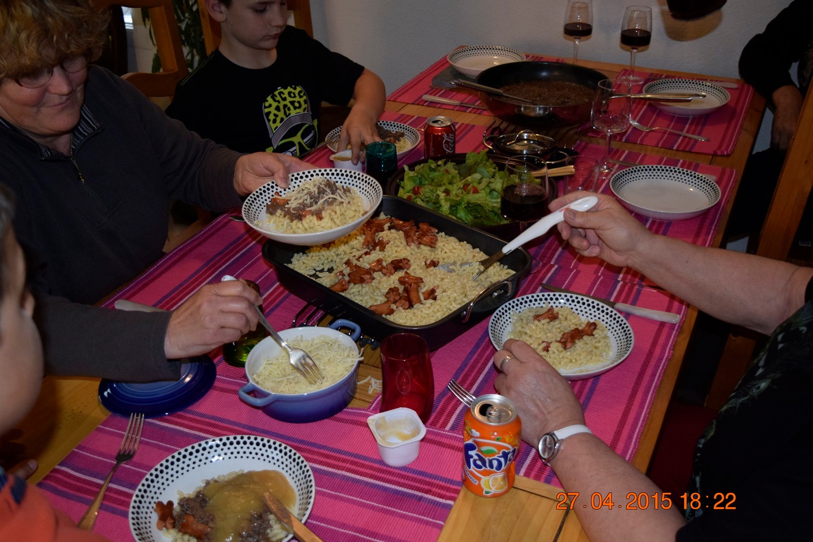 Der Besuch bei Ruedi war diesmal besonders ergiebig, durften seine Enkel und seine Frau verschiedene Utensilien wie Helm, gepolsterte Jacken und Anzüge für eine Spende entgegen nehmen. Chnuschtis Birne war jedoch zu gross um einen passenden Helm zu ergattern, er ist jedoch am Abnehmen und so hoffen wir, dass er später in etwas herein passen wird. Zudem haben alle sehr gut gespeist mit dem Lieblingsessen von Raphael.