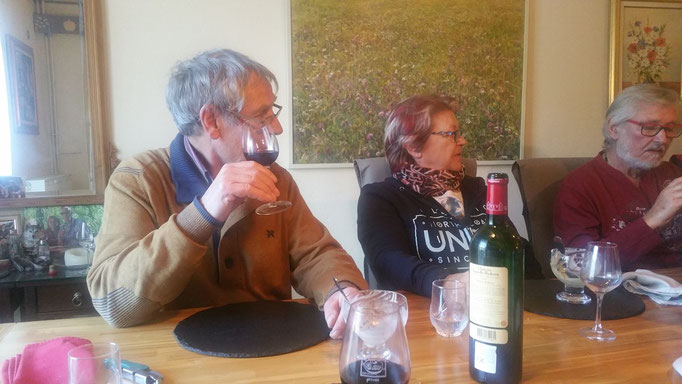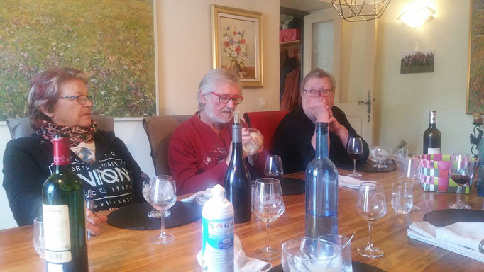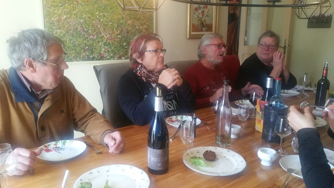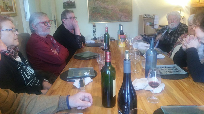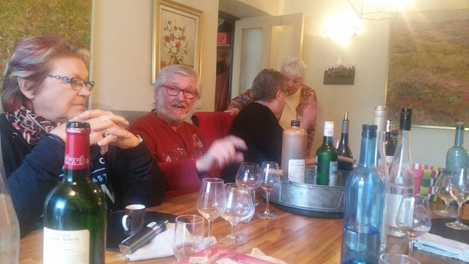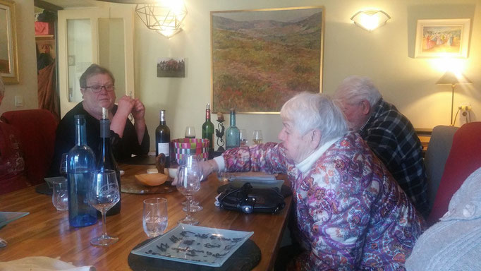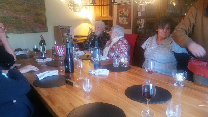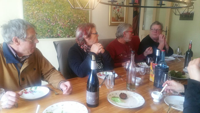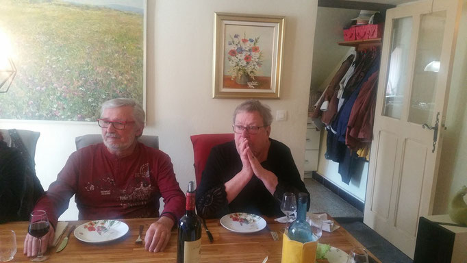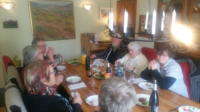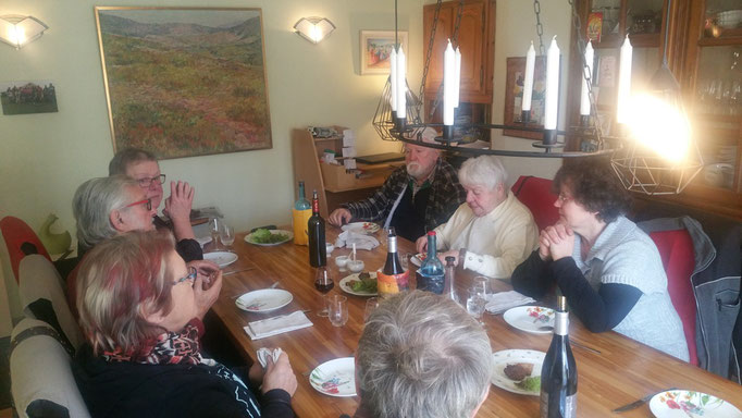 Am 3.März 2018, ein schon ganz angenehmer warmer sonniger Tag, waren wir bei oben genannten wie schon oft eingeladen zum Mittags-Schmaus im wahrstem Sinne. Ruedi& Sonya, Willy& Raschael sowie Chnuschti mit Agnes waren die Geladenen. Mit herrlich mundendem Wein wurde wieder einmal zu viel des guten fasst gegesen und getrunken.