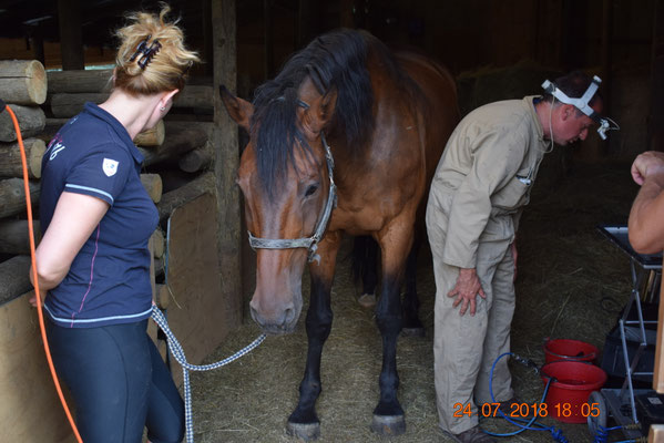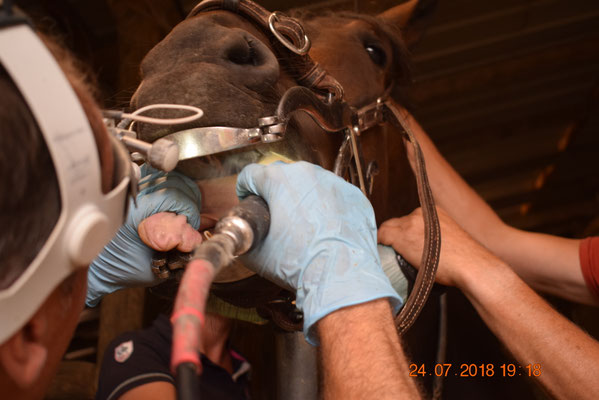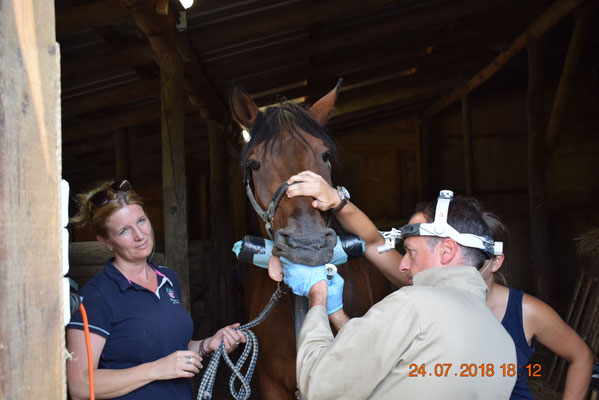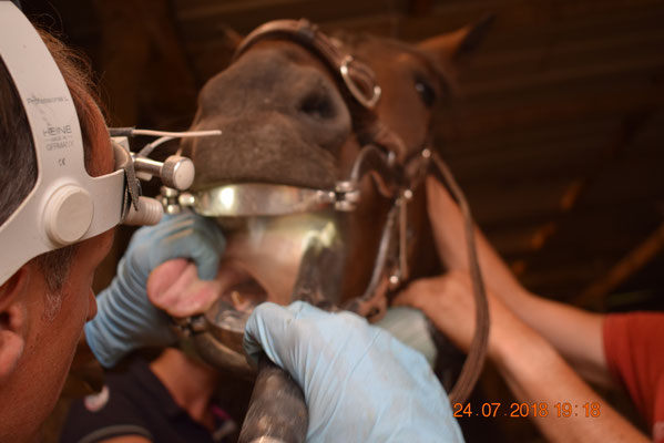 Ihren Pferdezahnarzt mit, welcher, bei Ihre Pferden dessen Zähne kontrollierte.