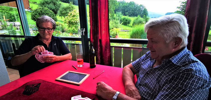 Wieder mal ist es soweit, dass Wisi und Sepp mit Gemahlin sowie Chnuschti sich am 23.8.19 zum Schieber-Jass trafen. Dies wie seit 16 Jahren ca. 4 x im Jahr. Wie schnell doch die Zeit vergeht. Wahnsinn.!!!