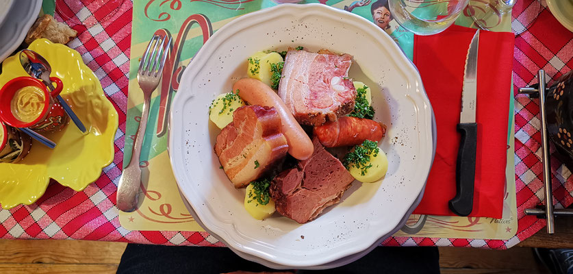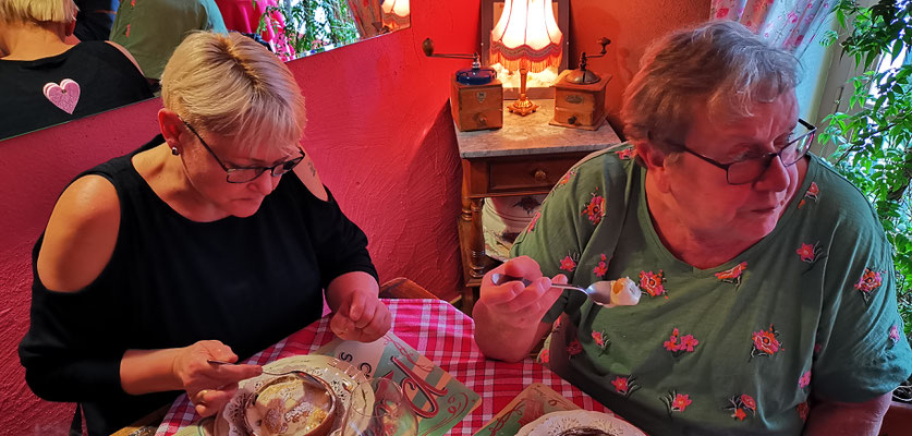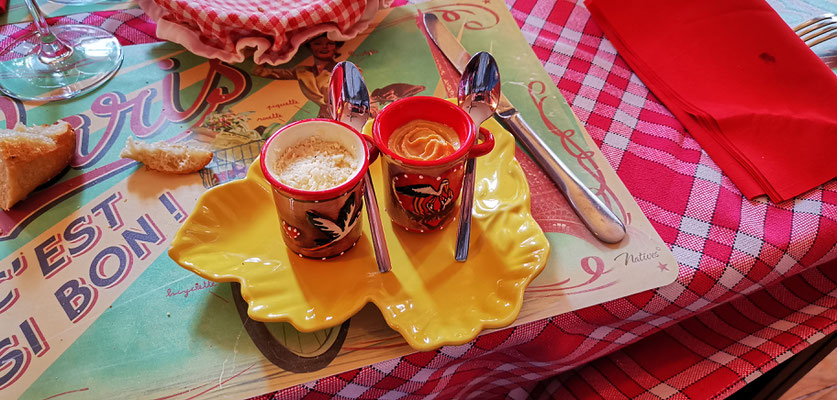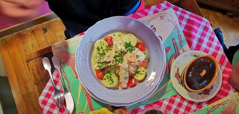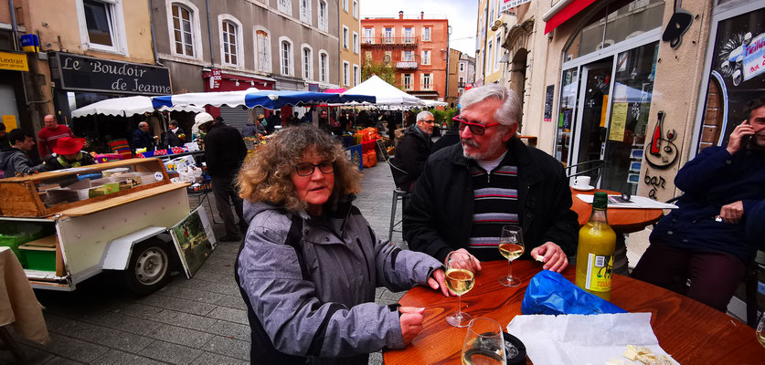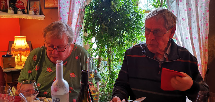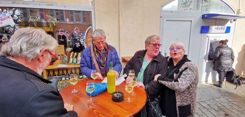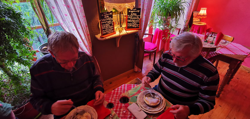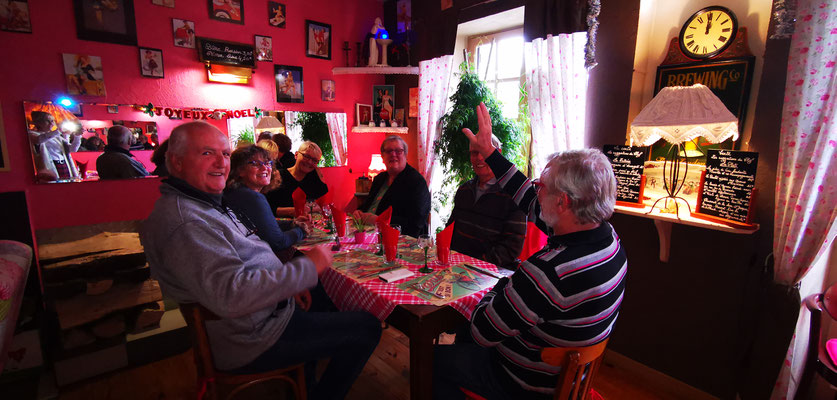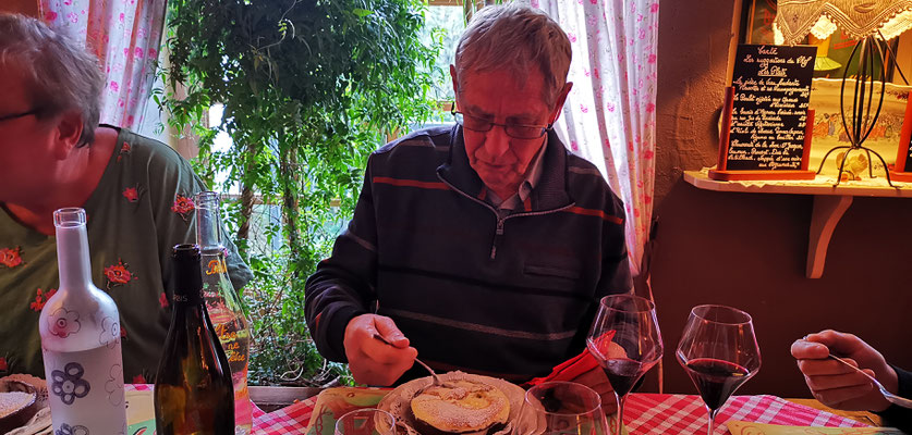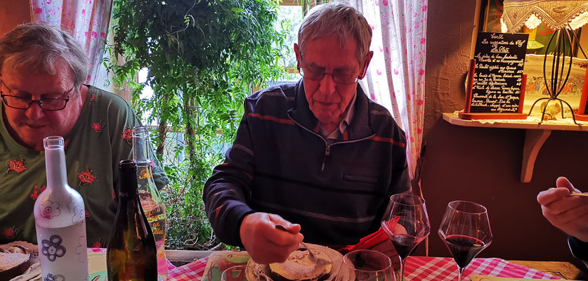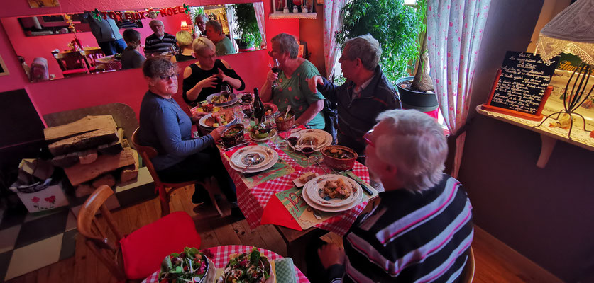 Der 14 Dezember war Markttag in Privas. Rudi mit Sandra, Daniel mit Henny und Chnuschtis nützten die Gelegenheit vor Weihnachten nochmals zusammen zu kommen, und ein paar gemütliche Stunden zu verbringen. Nach dem Apporo auf dem Markt ging`s auf zum Mittagessen. Im Restaurant La Dine in Coux von Privas Richtung Le Pousain. Idillisch gelegen, sagenhaft verträumt und sehr gut.