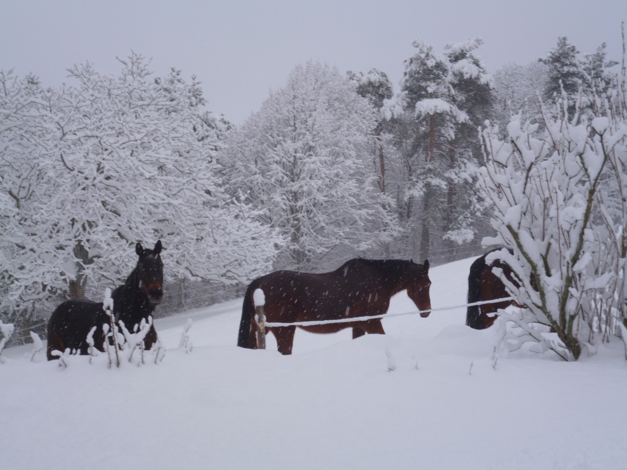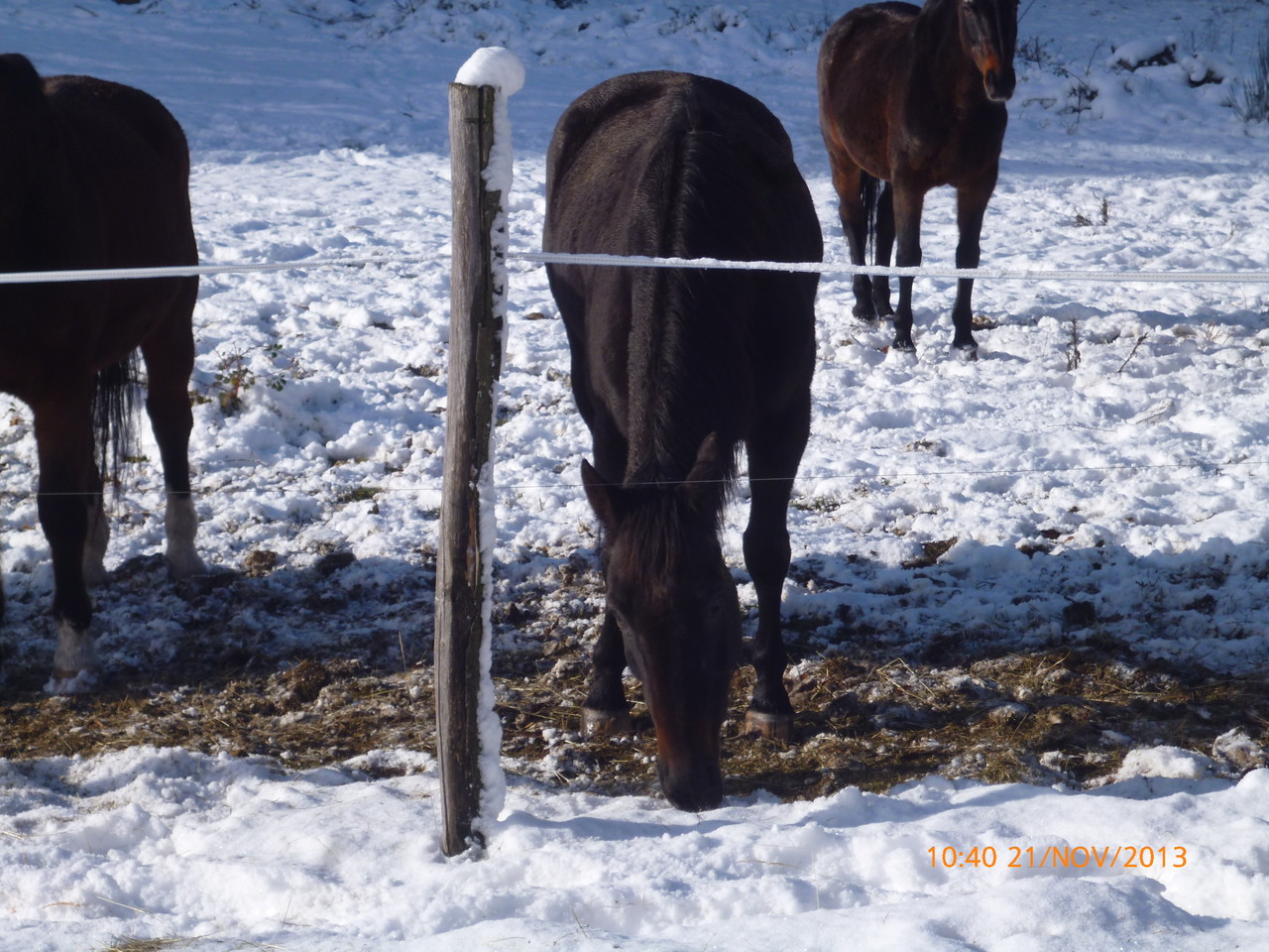 Hier eine weitere Einlage, wie friedlich ist es doch zu sehen, wie gemütlich diese Pferde das Ganze angehen. Nume nüd hetze. Geschehen am 27.11.2013