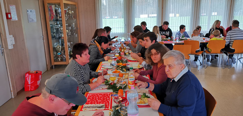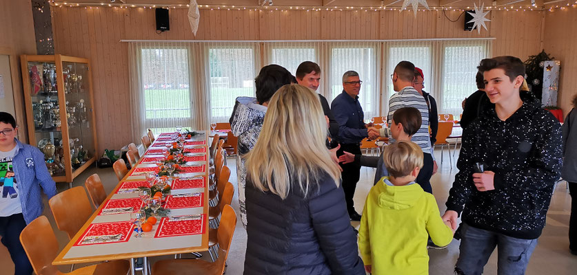 Dieses Jahr konnten auch die Töchter Yvonne mit Familie und Manuela teilnehmen. Evelyne hatte eine Zusammenkunft mit der Familie von Filu. Als besonders konnte an diesem Treffen das mitbringen eines Geschenkes bezeichnet werden. Mit Namensaufruf konnte dann jeder ein Geschenk auswählen, tolle Idee. Reichlich wie immer war der Verpflegung Tisch gedeckt. Wie immer verflog die Zeit allzu schnell. In einem Jahr hoffentlich wieder.