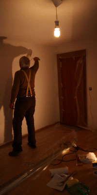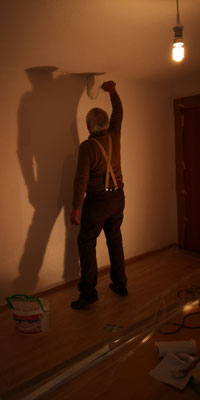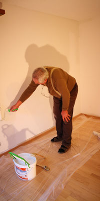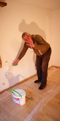 Eine Woche vor Weihnachten durfte er die Einliegerwohnung ( Einzimmer ) streichen mit seiner Frau. Eine kurzweilige kurze Arbeit. Er hofft, dass es guet genug war.